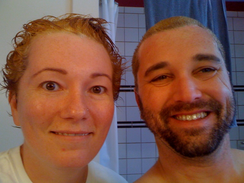 Last weekend Warren and I both dyed our hair blonde. (Isn’t he great for doing this with me? Especially when I did not ride naked in the parade with him?)
