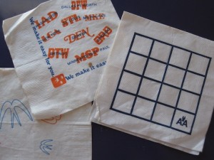 I came across old airline napkins and thought about how different airline travel was then. Not only are the logos different – but these napkins came from a time when meals were free and smoking was allowed!